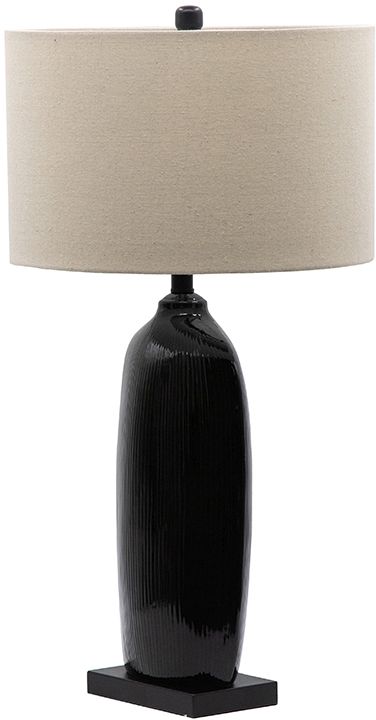 This elegant bottle table lamp is made from black glass with a rectangular base to enhance the stripped down sophistication of the contemporary home. Paired with its sand tone oval shade, it touches on design traditions from the mid-century onward, creating a complete look that’s ideal for sofa sides, bedrooms, and more. It’s a smart way to punch up decor without overpowering minimalist spaces.