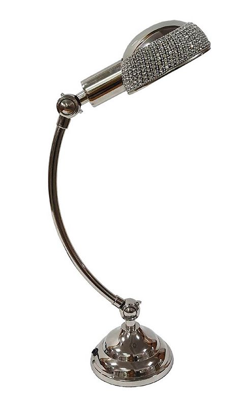Ideal for any transitional workspace,this table lamp features a bedazzled lamp head and a nickel finish.The downward focused light allows you to focus on the task at hand without sacrificing style.The lamp will dress up your office flawlessly.Read More