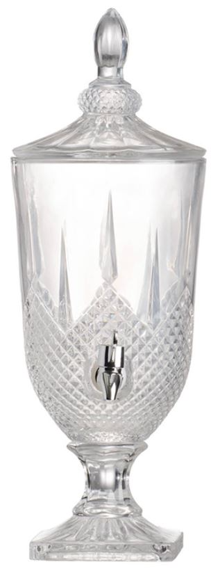 This sophisticated drink dispenser is perfect for hosting your next party with style and grace. Made of glass and adorned with a grid pattern, it has a classic pedestal shape and comes with a lid with a finial top. Dispense drinks with ease and elegance with this charming addition.Read More