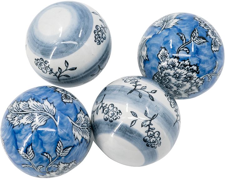 Perfect for a traditional home, this set of decorative balls features a blue and white floral pattern. These balls make an amazing effortless accent on any tabletop. Arrange them on a console or side table, or in a decorative vase, tray, or bowl to show off some classic style.