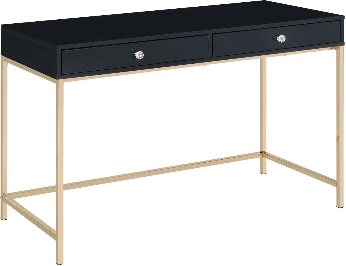 Motivation starts with a great office or study space. Enjoy the contemporary design of this Ottey office desk while getting all of your work done in style. Featuring white high gloss finish with a gold metal base, this practical yet fashionable desk offers ample surface room and 2 storage drawers for your office supplies or other accessories.Read More