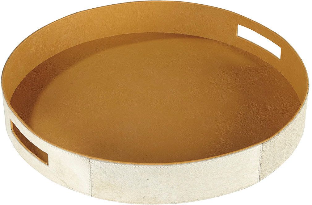 Lovers of clean, contemporary style go wild for the Odeda tray. A striking combination of hair on hide and faux leather round out a uniquely chic look.