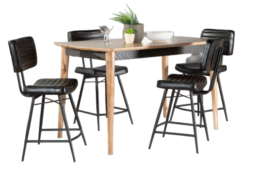 Includes: One (1) counter height table and four (4) counter chairs