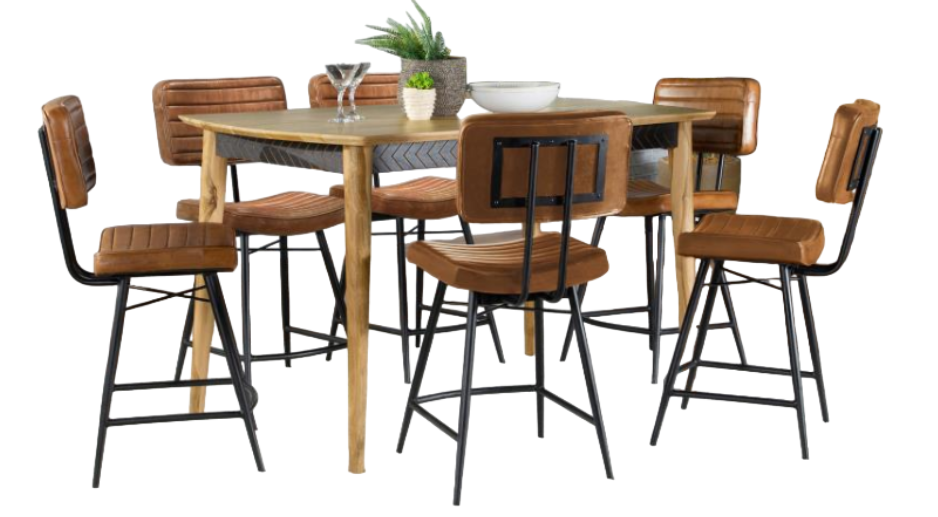 Includes: One (1) counter height table and six (6) counter chairs