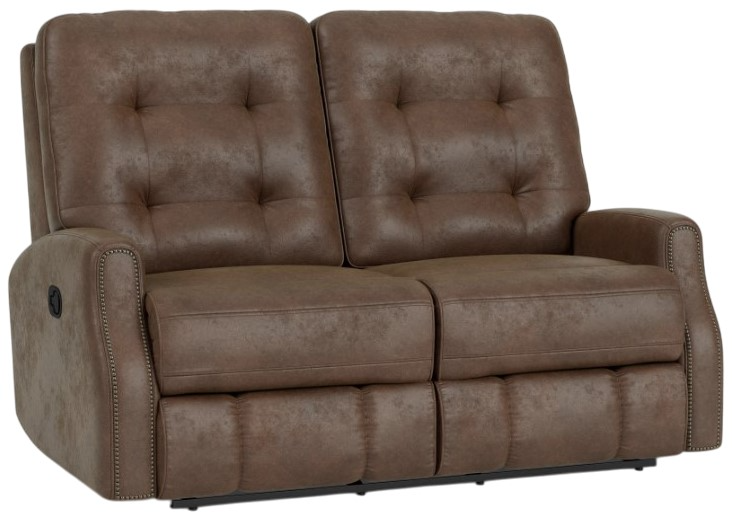 Curl up with a loved one on the Devon fabric reclining loveseat with nailhead trim. Pull the reclining mechanism to lean back to your favorite angle and bask in the feel of the soft upholstery.