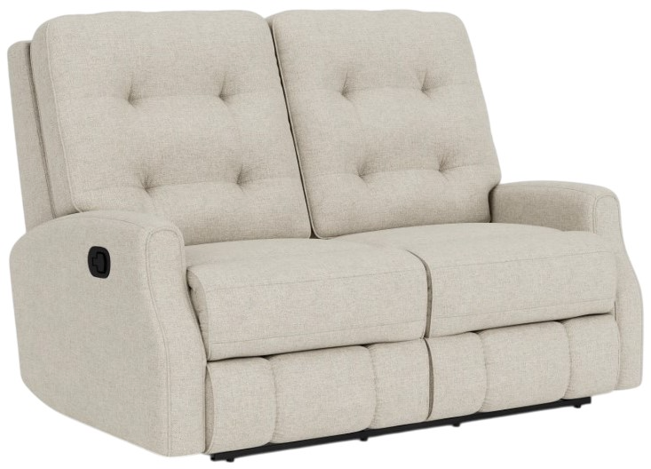 Curl up with a loved one on the fabric Devon reclining loveseat without nailhead trim. Pull the reclining mechanism to lean back to your favorite angle and bask in the feel of the soft upholstery.