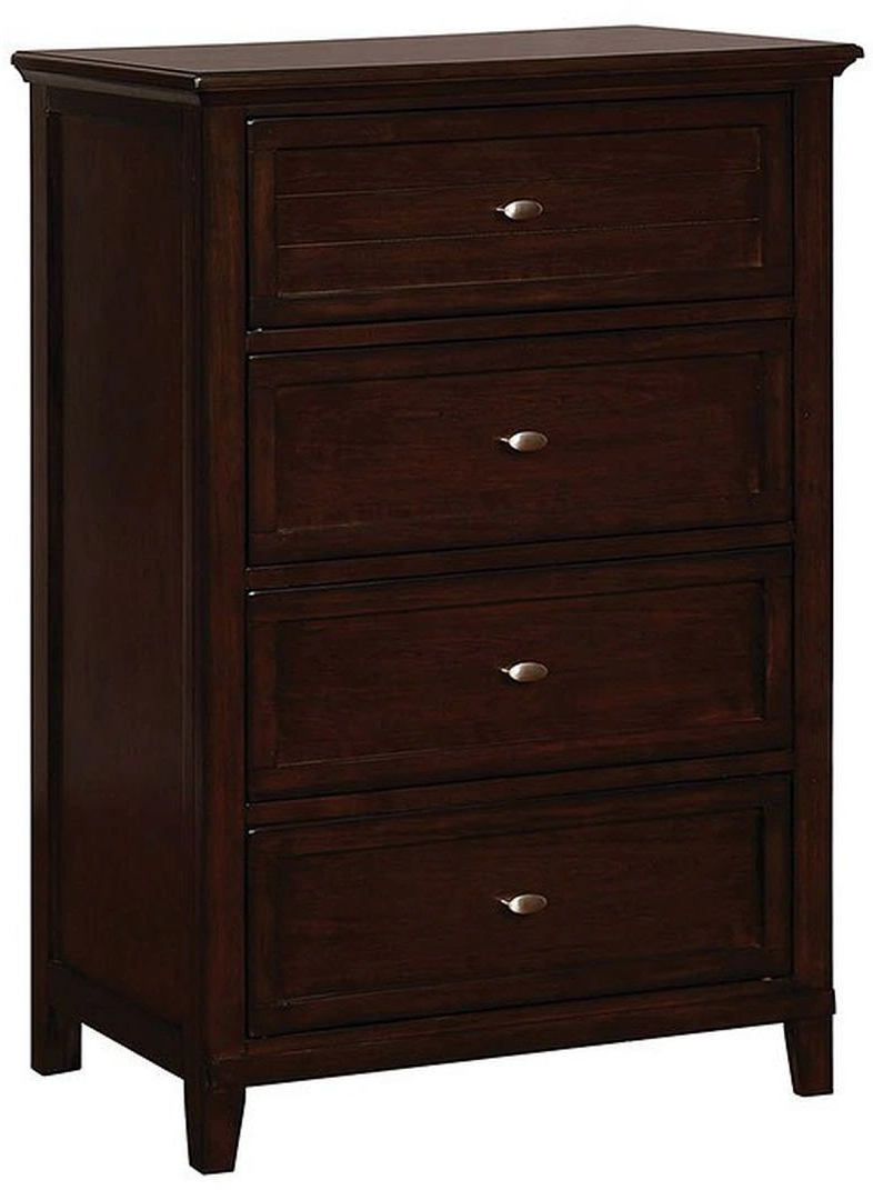 A no frills and down to earth approach was the design model for this chest. Simple molded trimming, light paneled drawer faces. Small rounded drawer pulls add a touch of shine to the piece without becoming a distraction.