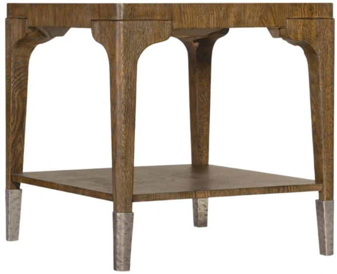 Craftsman style meets contemporary flair with the Chapman rectangle end table, constructed of white oak veneers in a warm brown sorrel finish with design details including a scalloped apron and hand-hammered forged pewter ferrules. One shelf.Read More