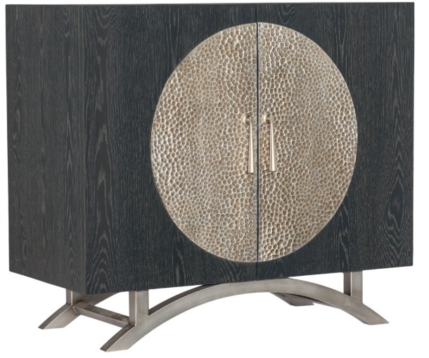 Organic with a touch of glam, the Nolita two-door cabinet is crafted of oak veneers, resin and metal and combines a charcoal finish with a medallion-like insert, metal teardrop pulls and a base in a pewter finish, along with a contrasting brown stained interior.Read More