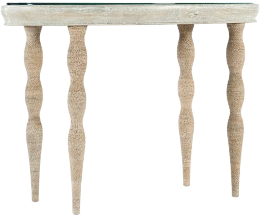 Bring the calming palettes and organic textures of waterfront living into your home with the oval-shaped Serenity Writing Desk. Crafted of oak veneers, it combines the light and airy Surf finish with whitewashed rope-wrapped legs and a painted glass top in tones of ocean blue and gold.Read More