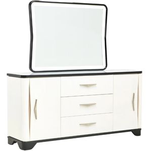 The Tuxedo piano keyboard sideboard and mirror set features spacious cabinets and drawers, including discreet side storage. Inside, a silverware tray adds a thoughtful touch, ensuring your finest pieces are stored with the care they deserve. Whether hosting a gala or a quiet family dinner.Read More