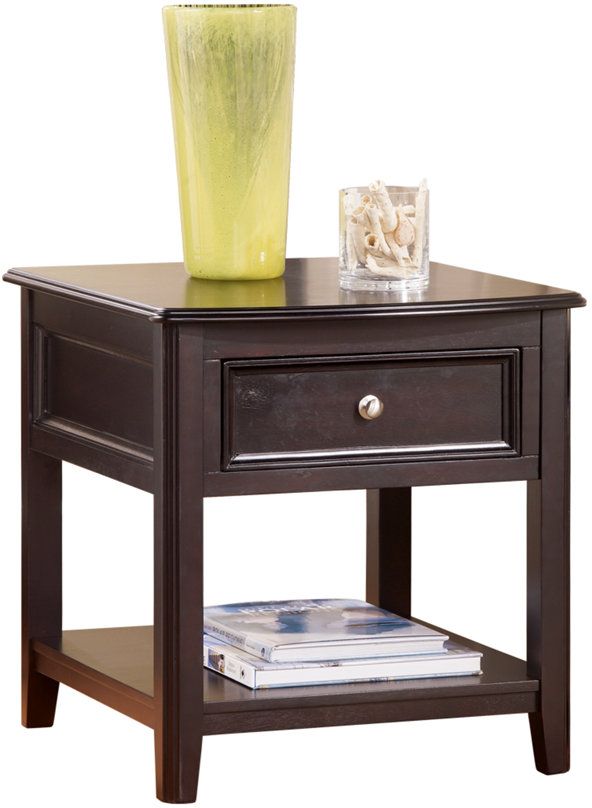Add sleek convenience to your living space with the Carlyle rectangular end table. Tuck away belongings in the single drawer and place reading material readily at hand on the open shelf.