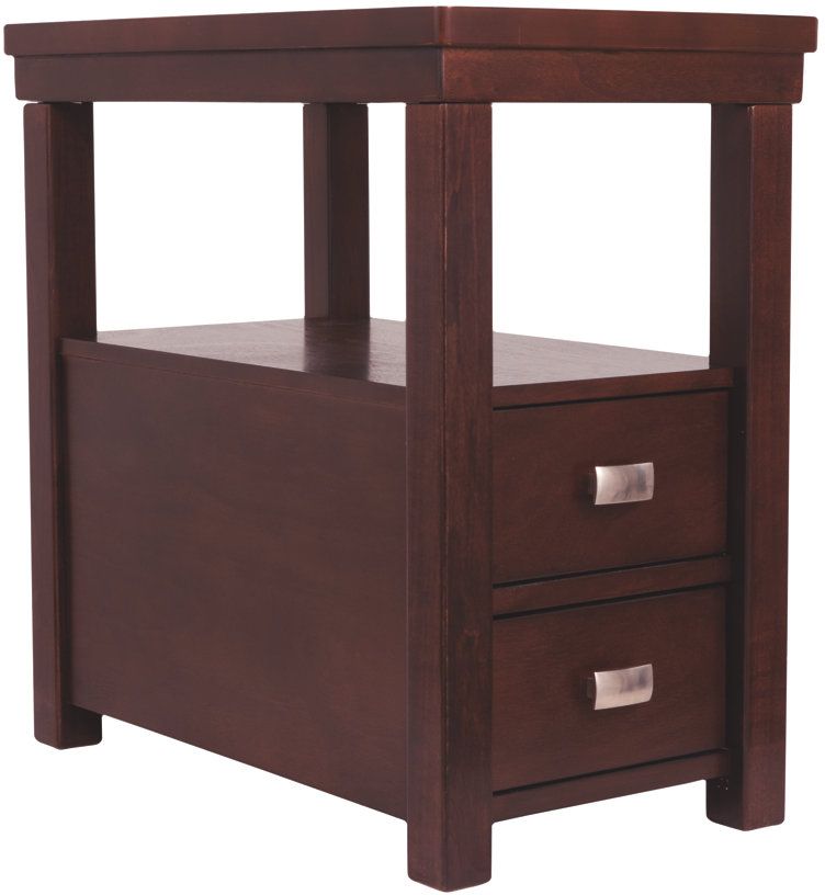 This Hatsuko end table with hand-applied finish features 2 smooth-gliding drawers and an upper shelf, perfect for keeping couch-side necessities close at hand.