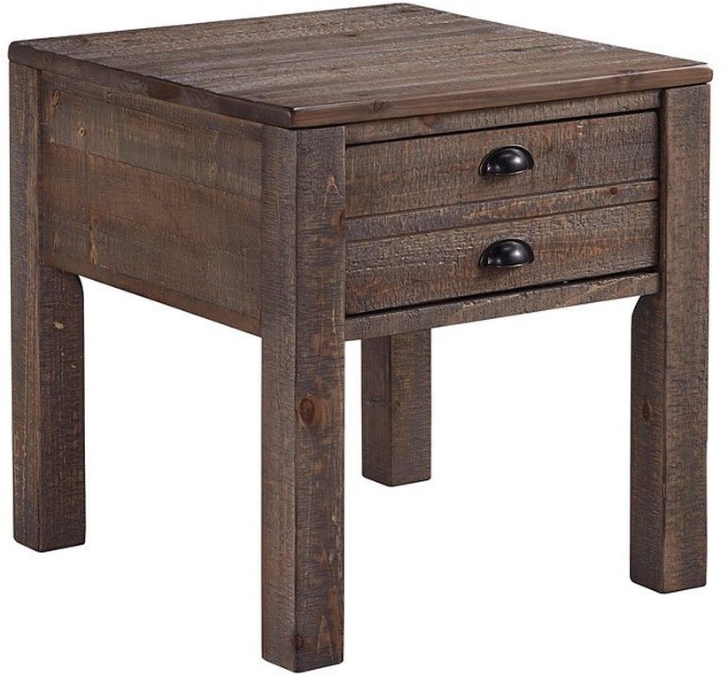 Keeblen Grayish Brown Rectangular End Table made with select pine solids and veneers with an outstanding grayed pine finish with saw kerf distressing applied to all surfaces.Read More