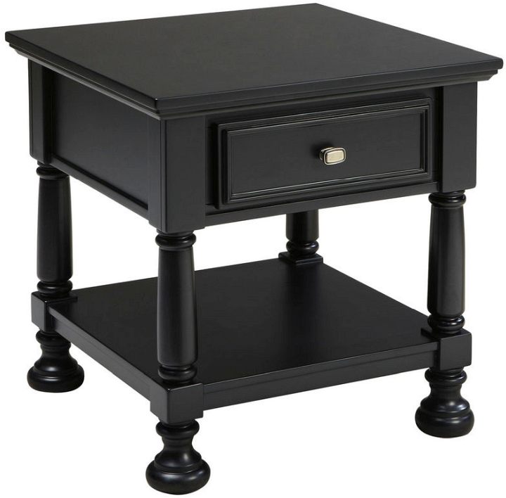 The “Landiburg” accent table collection brings the beauty of Vintage Casual to life with the black paint finish flowing over the framed drawer front details and the turned legs and bun feet creating a group that fits perfectly into the decor of any living area.Signature Design by Ashley Landiburg Black Square End TableRead More