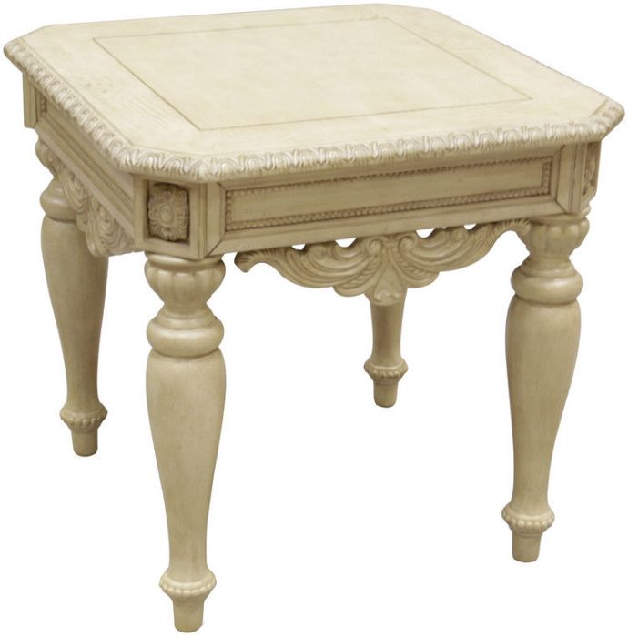With the beauty of the opulent antique white finish perfectly enhancing the intricate moulded ornamentation scrolling throughout these tables along with the natural inlayed marble inset on the cocktail table, the “Ortanique” accent table collection captures the elegance of Old World design to create a warm inviting environment for any living area.Read More