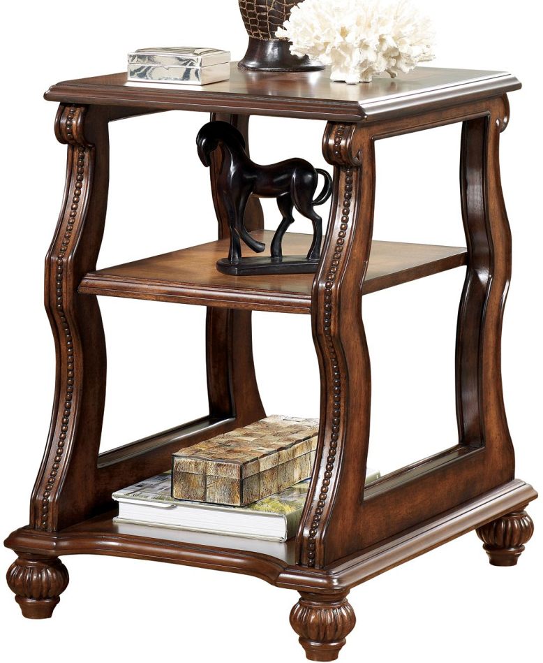 The flowing traditional design of the "Shelton" accent table collection features a rich finish and beautiful details to create a warm and inviting addition to any living room decor. The select cherry veneers are bathed in a dark brown finish that flows smoothly over the scrolling details and beautifully carved bun feet to bring out the sophisticated style of this collection.Read More